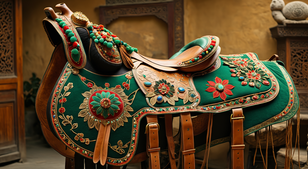 以柯尔克孜族传统马鞍设计为原型,添加浙江刺绣和镶嵌翠玉材质技艺,设计出新时代的时...