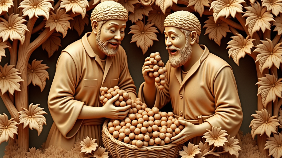 简介:温润木材质地承载西域风情,浮雕工艺鲜活呈现维吾尔族同胞采葡图景。二人笑颜舒...