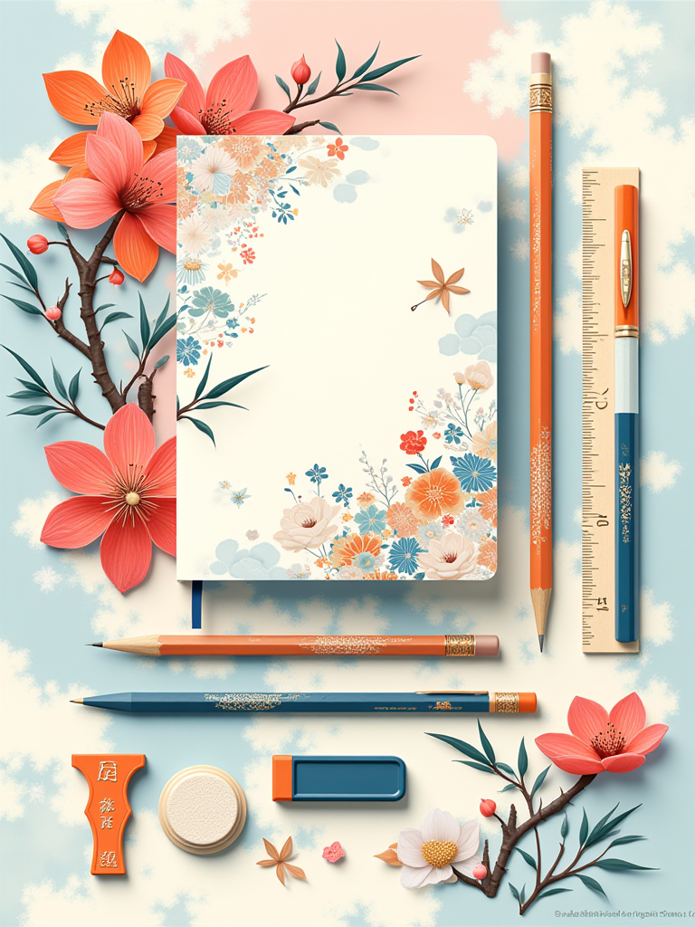 设计一款融合浙江与阿克苏文化符号的文具套装,具体设计方案如下:笔记本封面采用阿克...查看更多