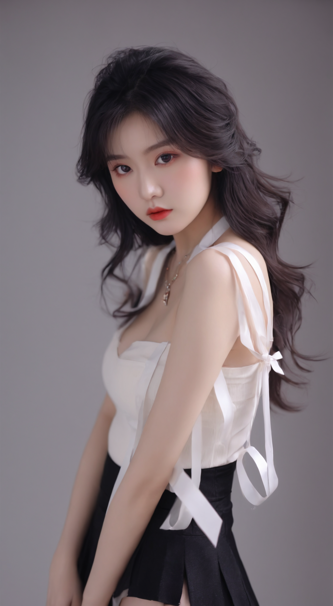 最好画质,8k,精致细节,绝美性感御姐在教室,长睫毛,大眼睛有卧蚕,腮红,水润粉唇,精致妆容,(面部特写)((全身照)),(修长的双腿),白嫩肌肤,(((穿着黑色性感职业装,丰满大胸前凸后翘,黑色丝袜,包臀短裙))),锁骨,项链,凌乱长发,丰满胸部,