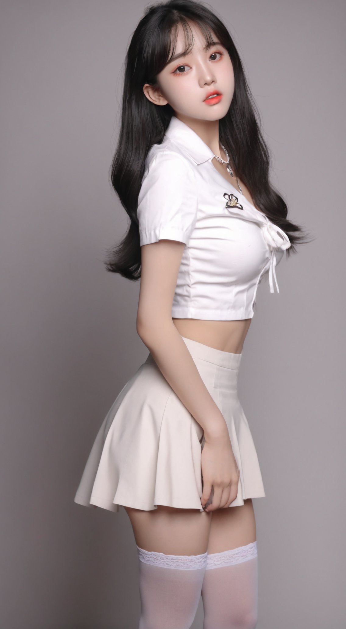 最好画质,8k,精致细节,绝美性感御姐在教室,长睫毛,大眼睛有卧蚕,腮红,水润粉唇,精致妆容,(面部特写)((全身照)),(修长的双腿),白嫩肌肤,(((穿着白色性感职业装,丰满,黑色丝袜,紧身包臀裙))),锁骨,项链,凌乱长发,魔鬼身材