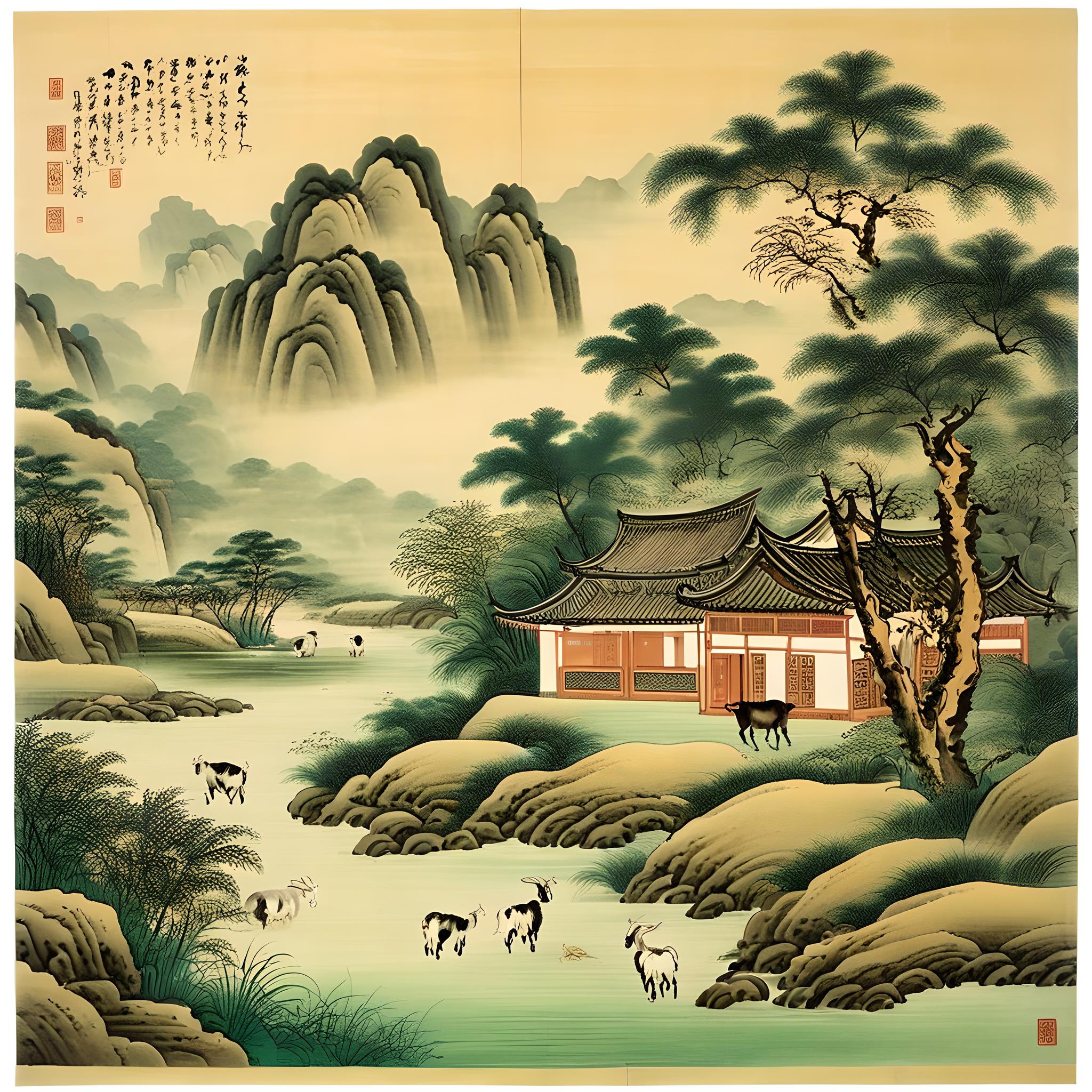 山居水墨画