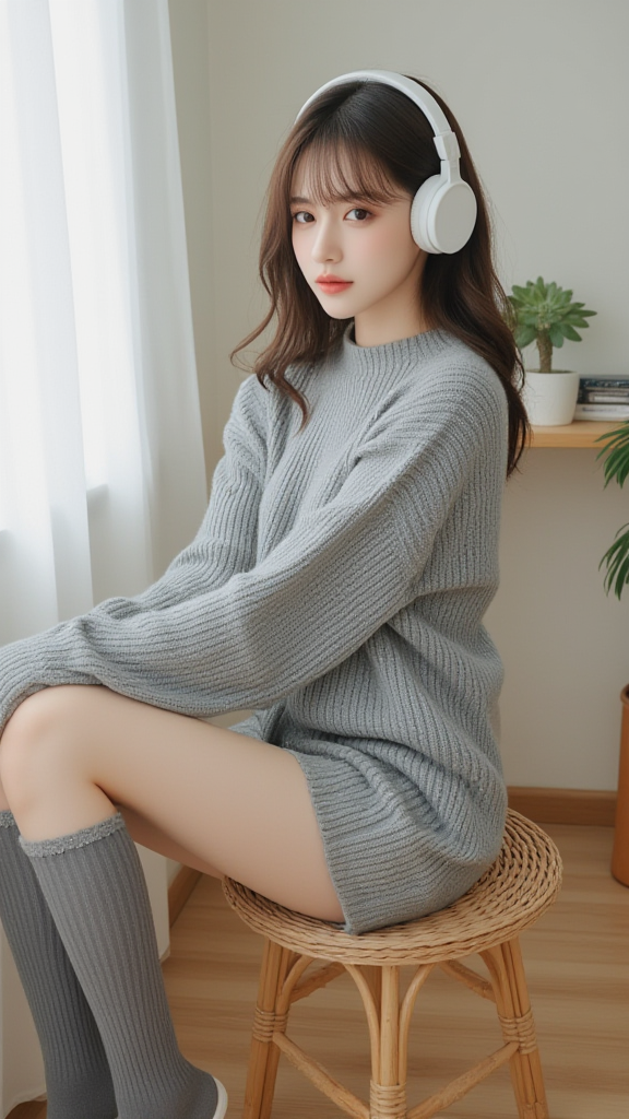 灰色毛衣女孩