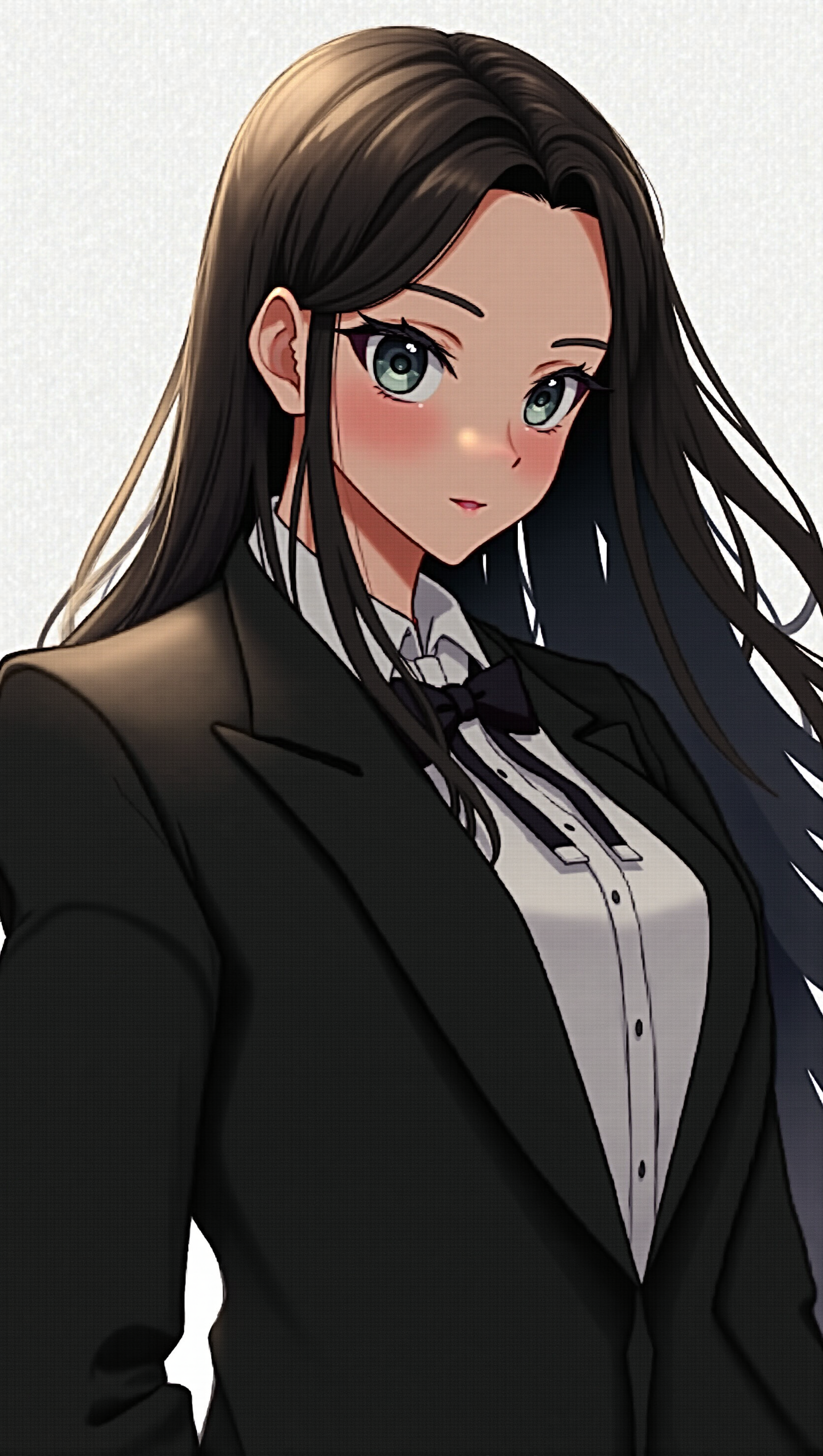 8k分辨率,大师作品,完美像素,最好画质,一个极致美丽的年轻少女,20岁左右的少女,淡妆照,西装美女,全身照,修长柔美的躯体,体态丰满,发齐肩,乌黑柔顺,光可鉴人,妩媚动人。气质高贵,职业女装,大堂经理常款小翻领西装,白衬衣,小领结,包臀短裙,高清照片,嫩白大长腿