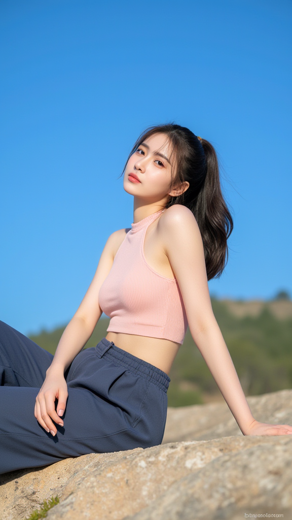 大石头上女孩
