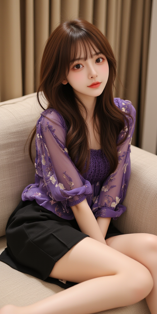 沙发上的紫色上衣女孩