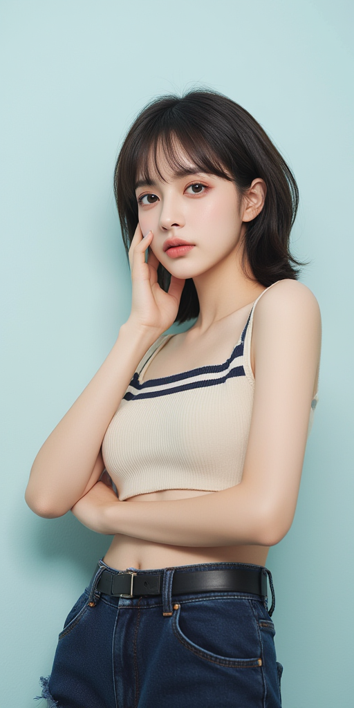 摸下巴女孩
