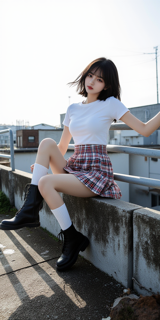 短发格子裙女孩