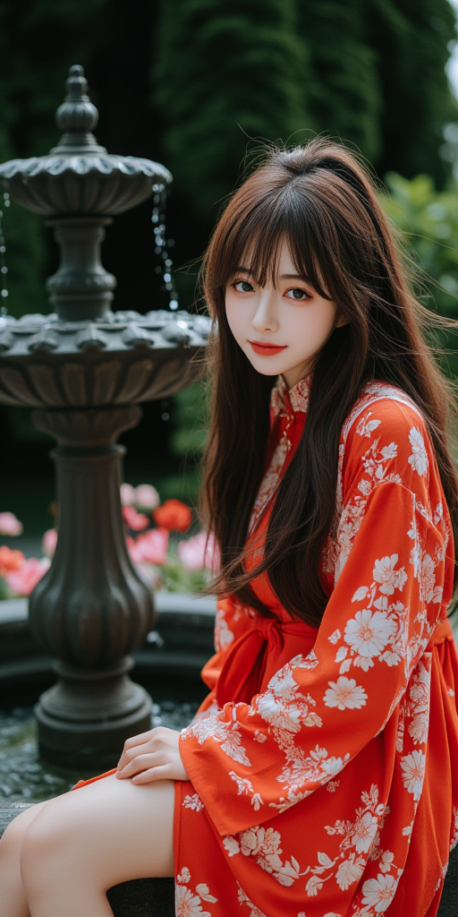 喷泉广场女孩