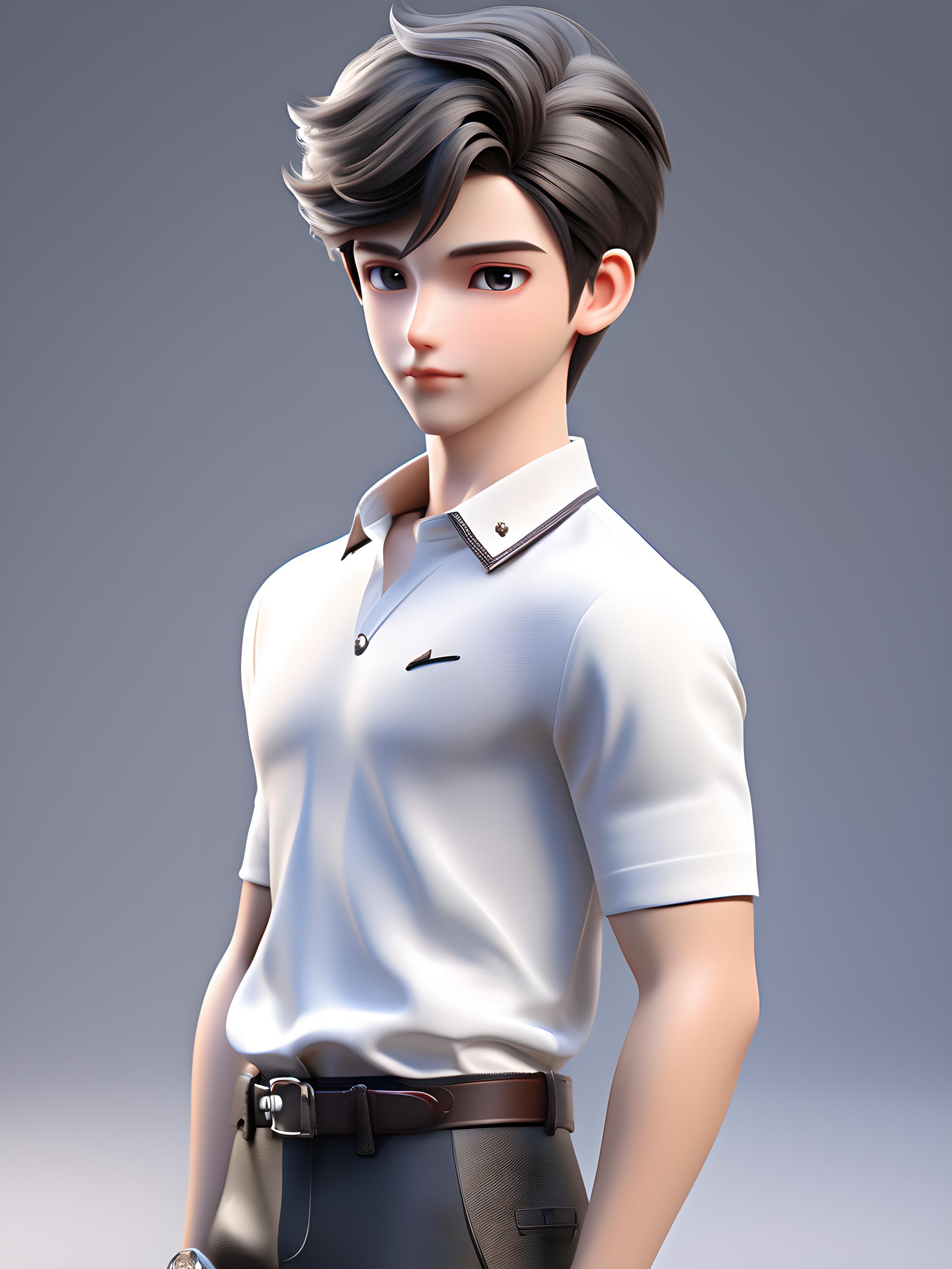 3D动漫少年,帅气脸型,利落发型,潮流穿搭,全身3D模型,blender渲染,写实质感,高清4K,电影级光影,干净背景,高品质,无瑕疵