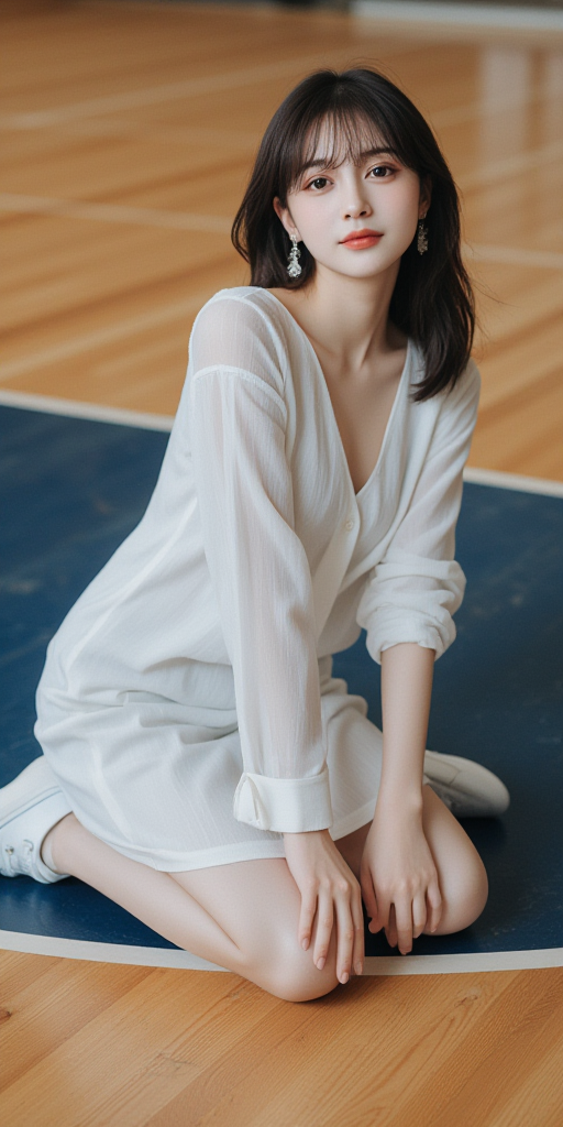 篮球馆跪坐女孩