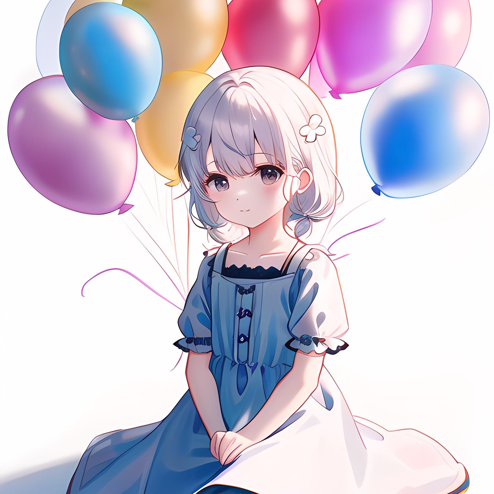 白头发的奶奶送美丽的气球给2岁小女孩