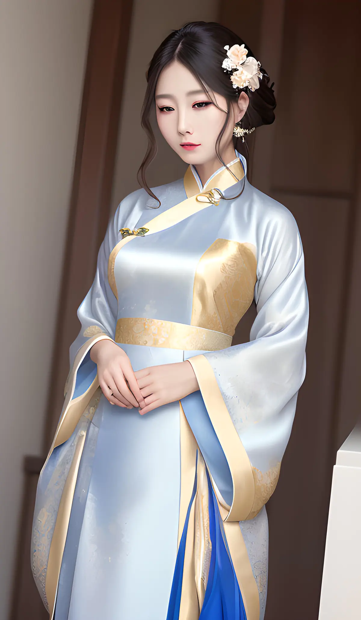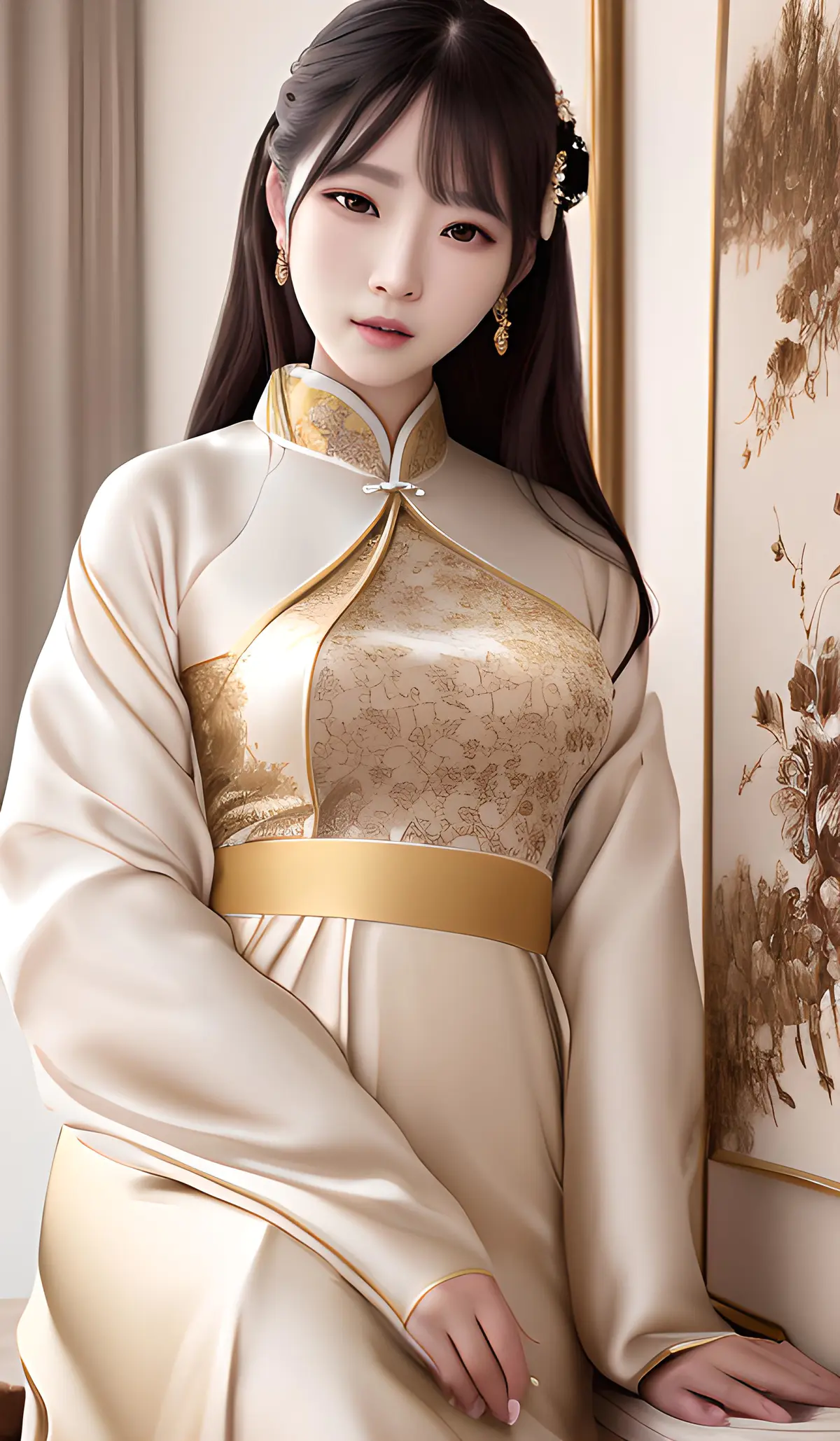 在画面构图上,我会运用黄金比例来安排小姐姐的位置和比例,使得整个画面更加和谐、美观。她可能会被描绘为一个端庄优雅、气质高雅的女子,穿着传统的汉服或旗袍。