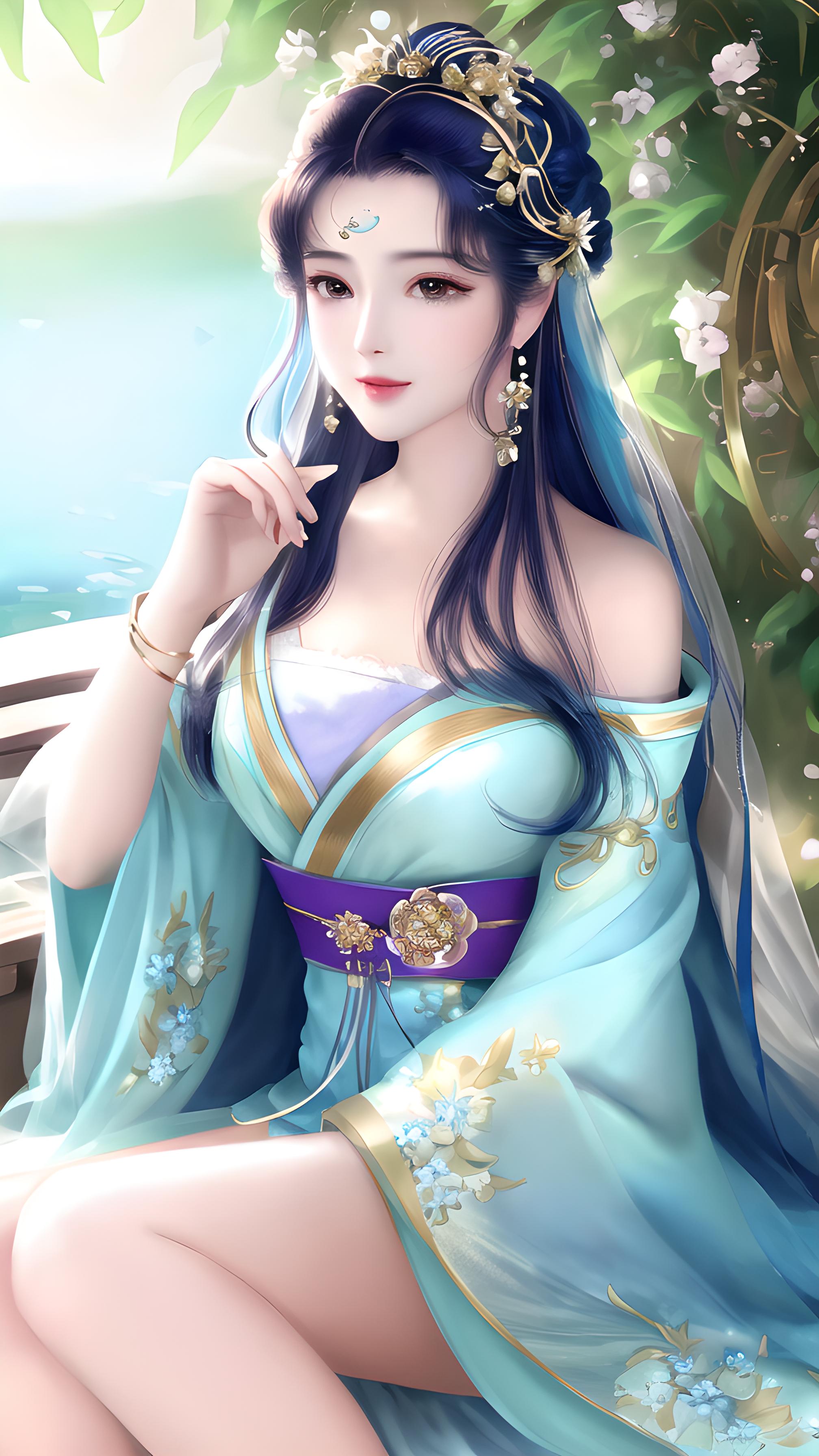 步履轻盈,服饰华丽 扶额浅笑,眼神娇媚